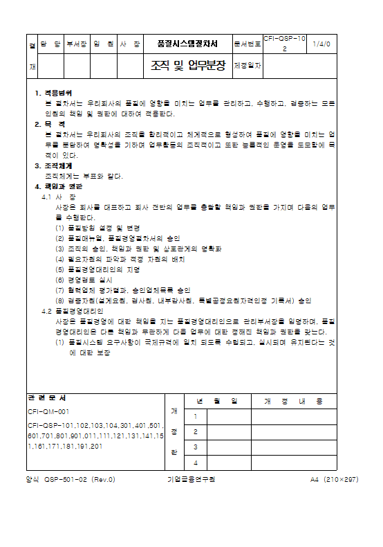 - 동적 업데이트: 조직은 살아있는 유기체입니다. 연 1회 이상 정기적으로 양식을 검토하여 실제 수행 업무와 문서 간의 괴리를 좁혀야 합니다.