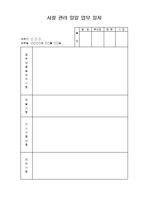 시설 관리 일일 업무 일지 양식 무료 다운로드